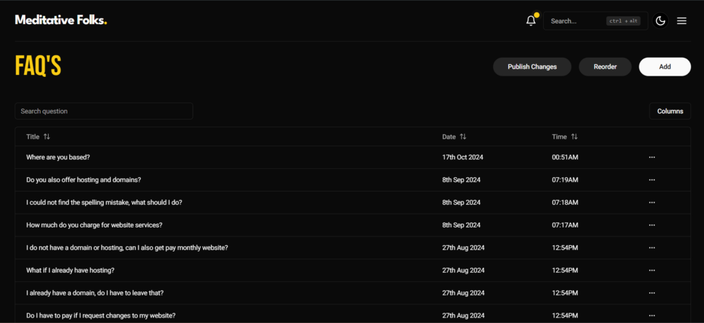 Example: You want to manage your testimonials, services, client logos, FAQs. You don’t want to go to page builder because it is hectic and time consuming. A custom admin panel makes it easy and time saving.